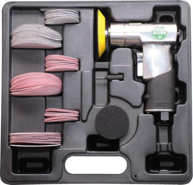 FOS003 Druckluft-Exzenterschleifer-Satz, 3" & 2" Schleifteller, versch. Schleifscheiben