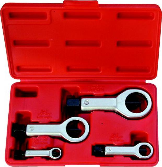Mutternsprenger-Satz Mechanisch gesenkgeschmiedeter, vergüteter, plattierter Stahl. Ideal zum Lösen von beschädigten/ abgenutzten Muttern usw. 4-teiliger Satz Wird in einem geformten Koffer geliefert. Kapazität: 9-27mm (3/8” - 11/16”).