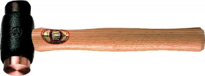 Schonhammer mit Schlagkopf aus Temperguss mit solidem Holzstiel. Die Kupferschlagseite ermöglicht extra harte, sichere Schläge wogegen die Rohhautseite federnde Schläge bietet.