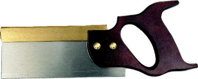 Zinkensäge mit Messingrücken Klinge aus legiertem Stahl, gespannt mit gehärteten und geschliffenen Zähnen. Hochfester Messingrücken und polierter Rosenholzgriff mit zwei Messingschrauben.Blattlänge 200mm (8"), 20 ZpZ.