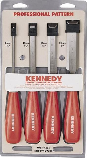 Stechbeitel-Satz Gehärtete, getemperte, geschliffene, polierte und legierte Chrom-Vanadium-Klingen. ‘C.A.B.’- Griffe (Cellulose-Azetat-Butyrat). 4-teiliger Satz, Inhalt: 6, 13, 19 & 25mm