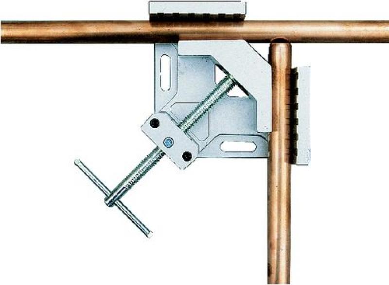 Winkelspanner Für Holz, Rohre und Winkel. Bewegliche Backen für verschiedene Breiten. Aluminiumdruckguss-Körper mit Befestigungsvorrichtung. Gesamtmaße: 158mmx158mm, Backenbreite: 36mm