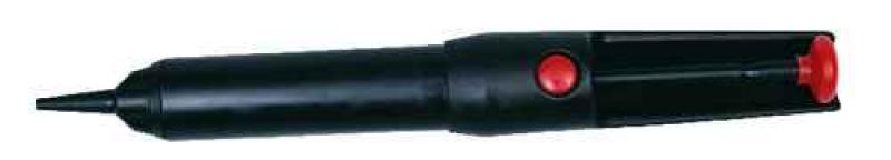 Entlötet durch sprunggefederten Kolben, der im Gehäuse ein Vakuum verursacht. Mit Abzugsfedern außerhalb des Vakuumgehäuses und PTFE Düsen. Mit Sicherheitsschutzschild, karbonimprägnierter Spitze und antistatischem Gehäuse.