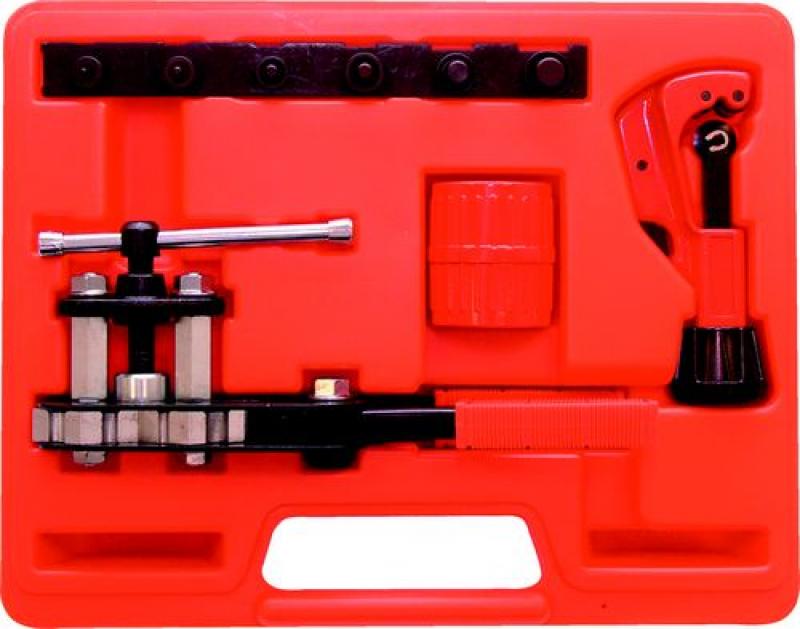 Zum Bördeln von Weichstahl-, Aluminium- und Kupferrohren bis zu 0,04” Wandstärke. Produziert SAE 45° Bördel. Spannbacken aus vergüteter Stahllegierung, präzisionsgeschliffen und verchromt, für geringere Reibung. Jedes Druckstück deutlich mit Größenangabe gekennzeichnet.