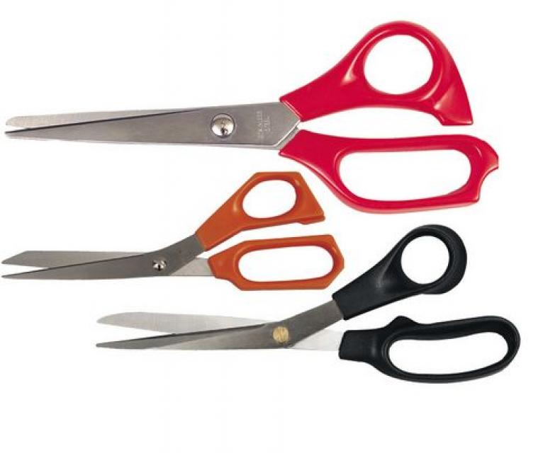 215mm Haushaltschere (Für allgemeine Schneideanwendungen, gehärtete und geschliffene Stahlklingen, mit asymmetrischen Kunststoffgriffen).
