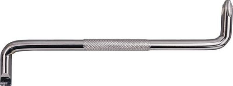 Winkelschraubendreher Vielseitiges Werkzeug für die verschiedensten Anwendungen. Eine Seite mit Kreuzschlitz, die andere mit Schlitz. Größe: 6.3mm Schlitz x Nr.2 Kreuzschlitz