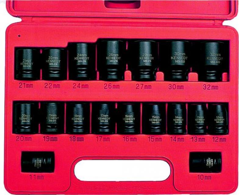 10, 11, 12, 13, 14, 15, 16, 17, 18, 19, 20, 21, 22, 24, 26, 27, 30 und 32mm. Lieferung im robusten, stoßfesten Tragekoffer.