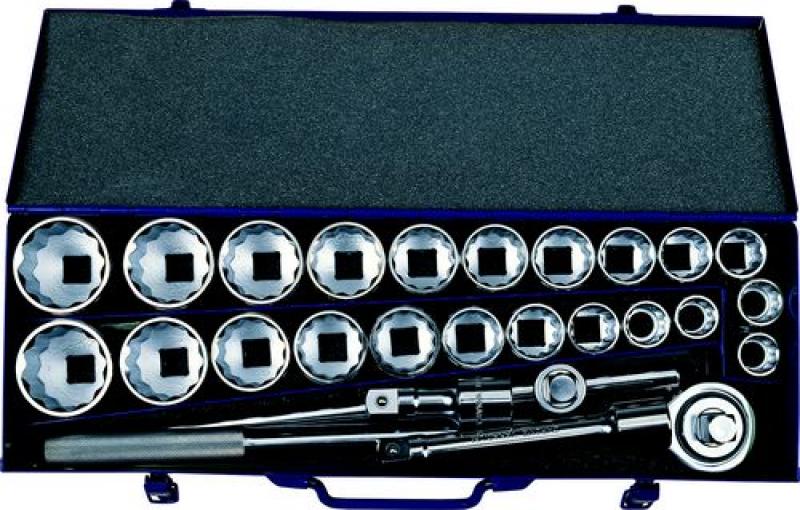 3/4" Vierkantantrieb, Doppelsechskant Steckschlüsseleinsätze: 22, 24, 27, 30, 32, 36, 38, 41, 46 und 50mm.