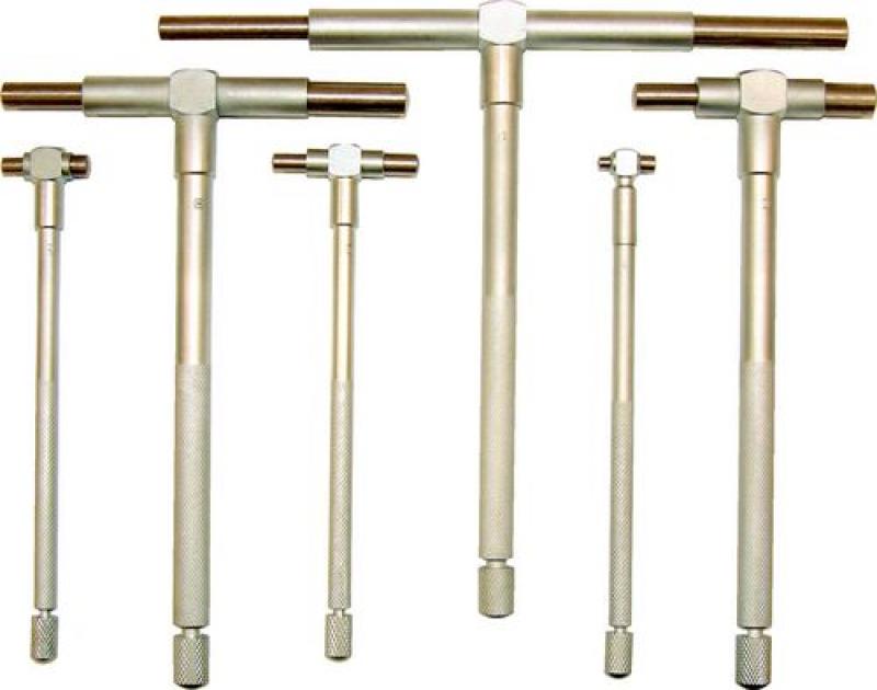 Wird in einer größenmarkierten PVC-Tasche geliefert. Beinhaltet je 1 der Größen A - F, Messbereich des Satzes: 8 - 150mm (5/16” - 6”). Mattierte, gerändelte Körper für gute Feststelleigenschaften. Gehärtete, rundgeschliffene Taster ergeben in Verbindung mit Messschrauben genaueste Messungen von Innendurchmessern.