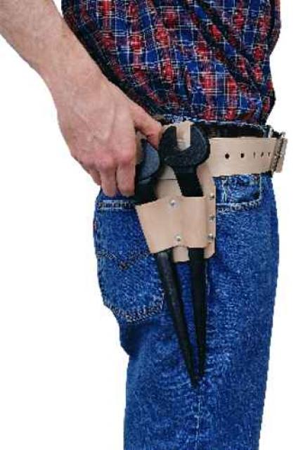 Maulschlüsssel-/Werkzeugholster Aus echtem, hellbraunem Spaltleder. Für zwei Schraubschlüssel. Verbindungen verstärkt. Gürtel nicht inbegriffen. Größe 170x110mm.