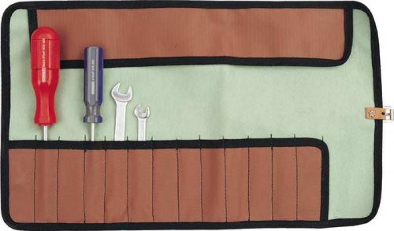 Rolltasche Mit 13 flachen Taschen, Lederwickelriemen und Metallschnalle. Umschlagklappe zur Sicherung der Werkzeuge. Größe 430 x 270mm. Werkzeug nicht inbegriffen.