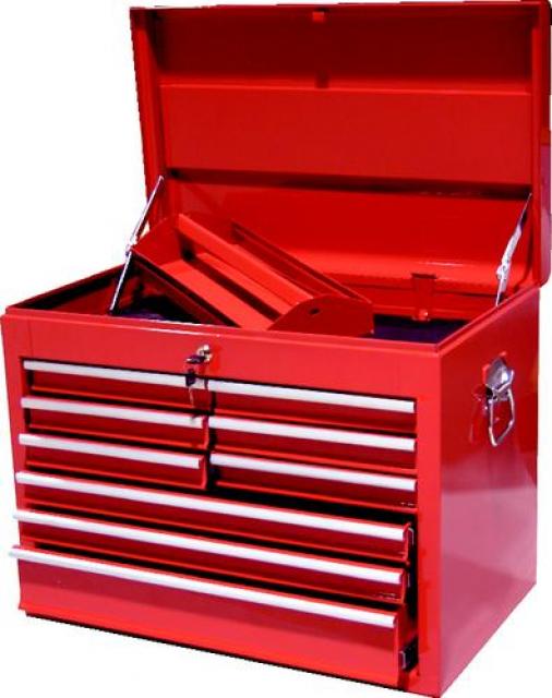 Wird mit Schubladeneinlagen und Ablagenmatte geliefert. Farbe rot. Für zusätzlichen Stauraum über 25% tiefer als Standard-Werkzeugkisten.