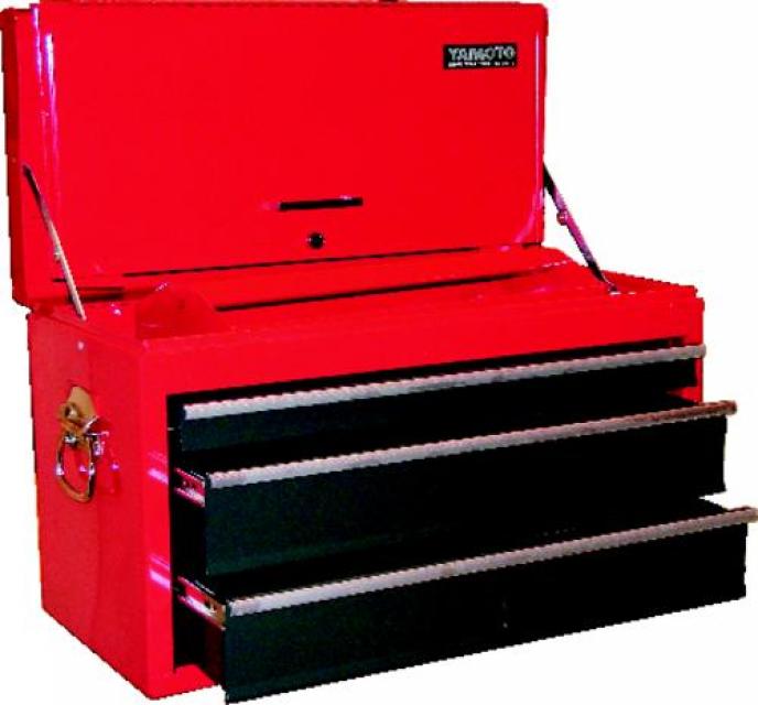 Mit Trageeinsatz, Klavierscharnieren und Deckelhaltern. Farbe rot.