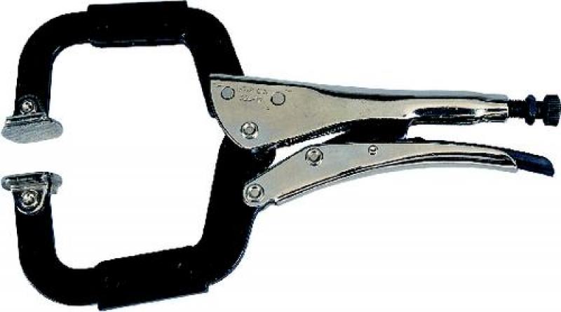 Klammer-Gripzange mit Schwenkdruckplatten Breite, tiefe Backen, um sperrige Werkstücke gut und sicher umspannen zu können. Mit Schwenkdruckplatten für zulaufende Oberflächen. Greifweite 0-400mm, Gesamtlänge 630mm.