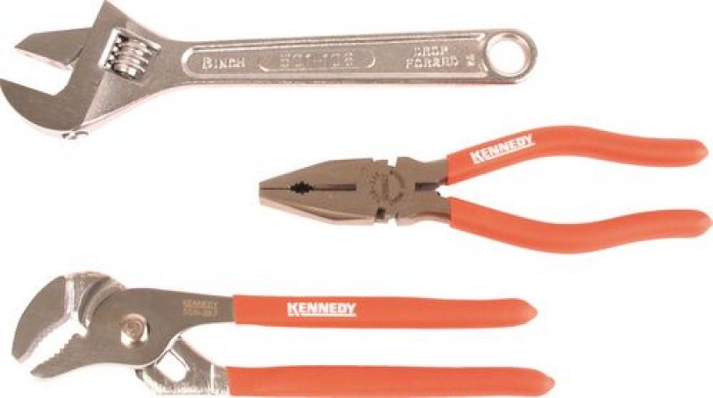 Chrom-Vanadium Zangen-Satz, Profiqualität 3-teiliger Satz, Inhalt: Rollgabelschlüssel 205mm, Wasserpumpenzange 190mm, Kombizange 180mm