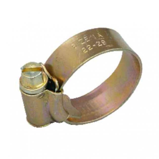 Zink-Schlauchschelle Rutschfestes Schneckengewinde. Aus britischem Stahl, nach BS 5315 gefertigt. Passivierte Zinkausführung. Größe M00, Spannweite 13-16mm.