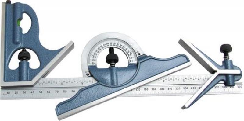 Jeder Satz besteht aus Anschlagswinkel, Zentrierwinkel, Gradmesser und Lineal. Anschlagswinkel: Exakt bearbeitete Flächen, feste Winkel bei 45° und 90°, eingebaute Wasserwaage, Stellschraube und Anreißer. Zentrierwinkel: Zur Mittenbestimmung runder Stäbe, mit einem festen Winkel von 90° und 2 exakt bearbeiteten Innenflächen. Gradmesser: Zur Winkelmessung bis zu 180°, 1° Gradeinteilung, mit einer bearbeiteten Fläche, 3 Rändelfeststellschrauben und eingebauter Wasserwaage. Lineal: 300mm/12” gehärteter Edelstahl, metrische und Zollmaße mit Einteilung in 0.5mm und 1/64”.