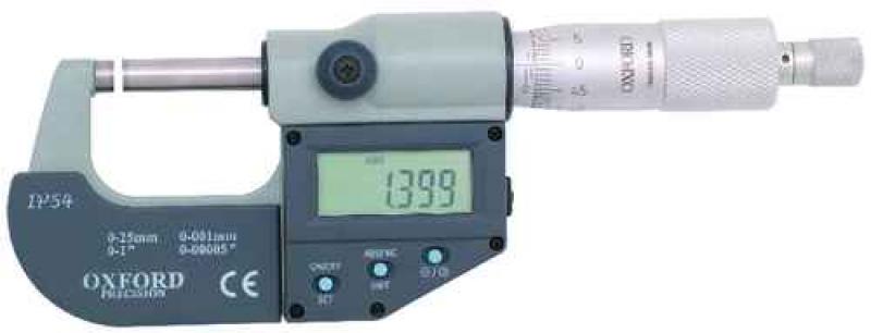 Das Mikrometer kann an einen PC Serial Port angeschlossen werden. Messbereich: 0-25mm/ 0-1", Ablesung: 0.001mm/ 0.0005". Messkraft: 5 - 10N. Genauigkeit: - 0.004mm