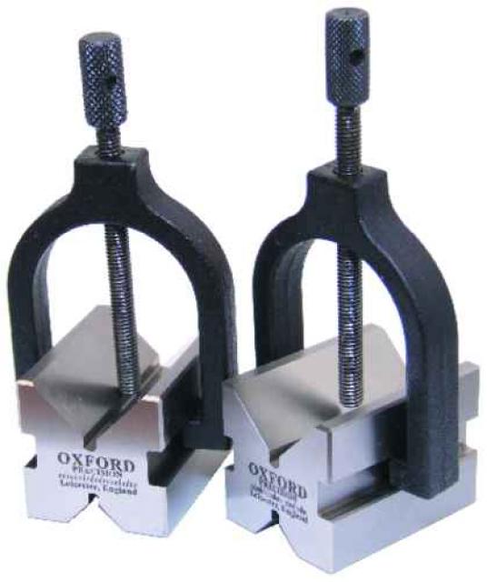 Zur Kontrolle von Präzisionsmaschinenteilen. Gehärteter und geschliffener Stahl. Lieferung in passenden Paaren. V-Nut zentral und parallel zu den Seiten und Standflächen, um eine perfekte Ausrichtung zu garantieren. Kompletter Satz mit zwei Prismen (ein Paar) und zwei Spannbügeln.