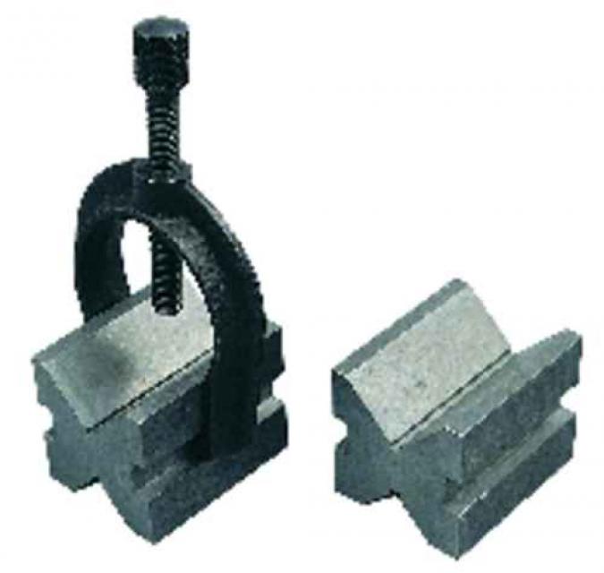 Zur Kontrolle von Präzisionsmaschinenteilen. Gehärteter und geschliffener Stahl. Lieferung in passenden Paaren. V-Nut zentral und parallel zu den Seiten und Standflächen, um eine perfekte Ausrichtung zu garantieren. Kompletter Satz mit zwei Prismen (ein Paar) und zwei Spannbügeln (formbare Eisenspannbügel mit Stahlschrauben). Gemäß BS 3731 : 1987.