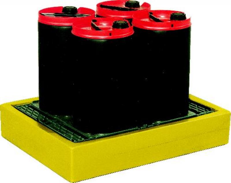 Auffangwanne für Fässer Für die externe Aufbewahrung von 25 Liter Fässern in Warenlagern oder Arbeitstätten. SWB1: Auffangwanne für vier 25l Fässer, Auffangvolumen 100l. Maße 900x700x165mm.