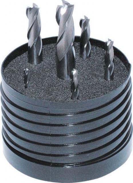 Langlochfräser-Satz VHM. Mit Zylinderschaft. Serie 48. Typ SDC-3PCS. Unbeschichteter Langlochfräser-Satz mit 3 Schneiden. 6-teiliger Satz, Inhalt: 3, 4, 5, 6, 8, 10mm