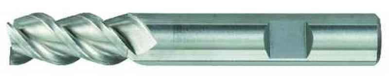 HSS-Co. 8% Schaftfräser 3 Schneiden, Zentrumschnitt, Spiralsteigung 50°, Zylinderschaft mit Weldonfläche nach DIN 1835B. Schneide-Ø nach e8 Schaft-Ø nach h6 Maße nach DIN 844