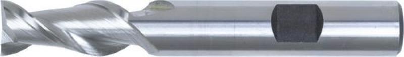 HSS-Co 8% Schaftfräser für Aluminium Spiralsteigung 42°, 2 Schneiden, Zylinderschaft mit Weldonfläche, Zentrumschnitt. Maße nach DIN 844 Weldonschaft nach DIN 1835B Schaftschneide-Ø +0.04 bis -0.0