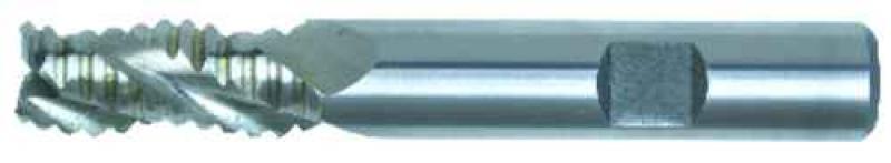 HSS-Co 8% Schruppfräser für Aluminium 3 Schneiden, Spiralsteigung 37°, Zylinderschaft mit Weldonfläche, Zentrumschnitt. Reguläre Länge. Maße nach DIN 844 Weldonschaft nach DIN 1835B Schaft-Ø nach h6