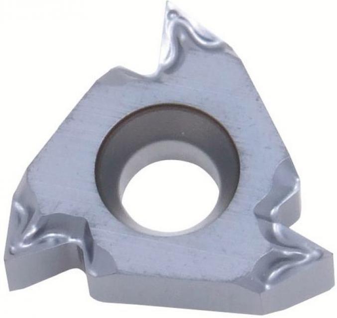 Wendeschneidplatte für Gewindeschneiden Für Profil Innengewinde, rechts, 60° QMA (P20-P40/K20-K30) beschichtet. Gesinterter Spanbrecher mit TiALN-PVD mehrfach beschichteter Sub-Mikrokörnung. Schneidet hochwertige Gewinde bei den meisten Materialien einschließlich exotischer Legierungen und Edelstahl. Die beste Schneidleistung wird bei mittleren bis hohen Geschwindigkeiten erzielt.