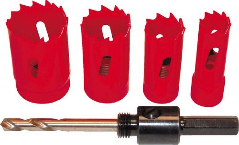 Lochsägen-Satz mit Wechselverzahnung Hochwertiger Satz. Wird in einer Lagerröhre geliefert. Vorzugsweise für das Lagern in Werkzeugkästen. 5-teiliger Satz, Inhalt: Säge 16, 20, 25, 30mm. Dorn K1.