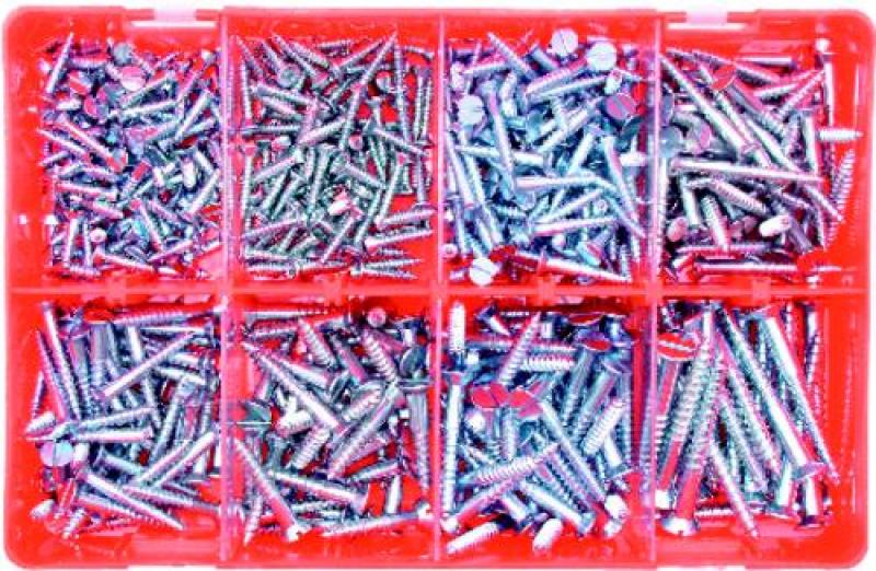 Holzschrauben-Zubehör-Sortiment Inhalt: Schlitz-Senkkopf, verzinkt 1/2 x 4, 3/4 x 4, 3/4 x 6, 1 x 6, 1/2 x 8, 3/4 x 8, 1 x 10, 11/2 x 10mm.