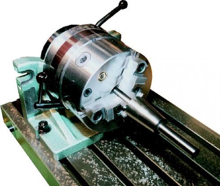 Horizontaler & vertikaler Teilapparat Type 5821 Ideal für Fräsen, Bohren, Schablonenbohren und ähnliche Maschinenanwendungen. Indizierungsgenauigkeit ± 120 sec. Einfache und kompakte Konstruktion, welche zwei Teilungsarten erlaubt: Winkel-Indizierung Durch den Skalenring, von 0° bis 360° in 1° Steigungen. Basis-Indizierung Mit Hilfe der Teilungsscheibe. Diese erlaubt 2, 3, 4, 6, 8, 12 und 24 Teiler ohne Demontage. Inklusive Standard 3-Backen-Drehfutter, selbstzentrierend, mit 2-teiligen, umkehrbaren Backen.